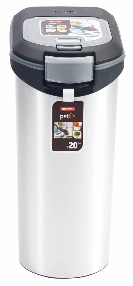Beholderen rummer helt opp til 20 kg for, som holdes friskere lengre på grund av silikone-lukningen, som er støpt på lokket. Dette sikrer en 100% luft tett beholder og holder foret helt friskt og luktfritt.