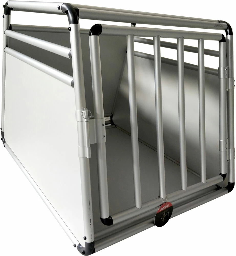 Hundebur med aluminiumskonstruksjon og MDF plate i bunnen, for enkel rengjøring. Buret har en stødig konstruksjon og en dørlås som er enkel å betjene.