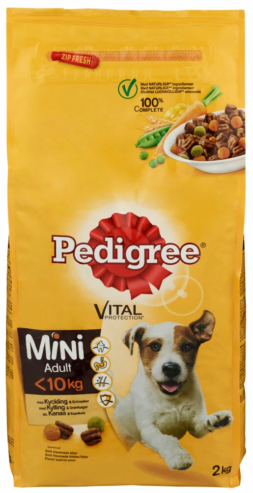 Pedigree® Adult Mini complete blitt dyppet i kjøttfulle safter, og inneholder kjøttprotein av høy kvalitet. Dette bidrar til å gi hunden energien den trenger til lek og moro Pedigree® Senior Kylling komplette tørrfôr inneholder den riktige balansen av protein, karbohydrater, fett, fiber, vitaminer og mineraler for å holde hunden din i toppform. Finn ut om komplett tørrfôr til valp, voksen og senior.