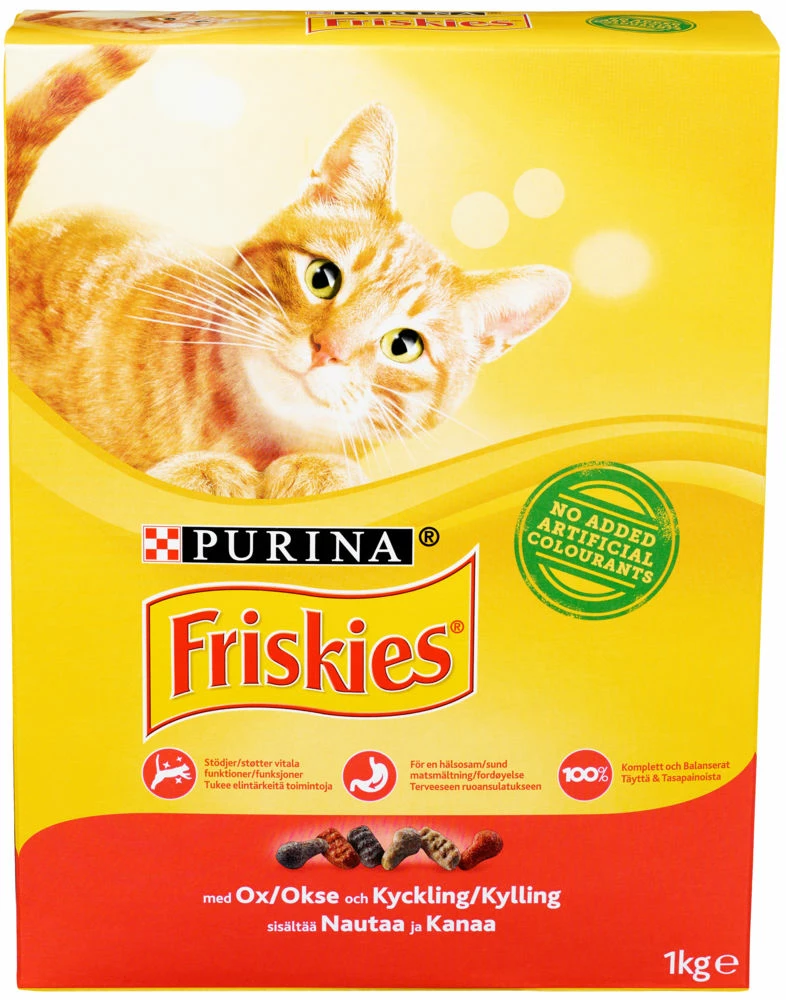 Friskies Okse/Kylling/Lever 1kg: Kattens unike personlighet tilfører noe helt spesielt til hjemmet, og gir livsglede.